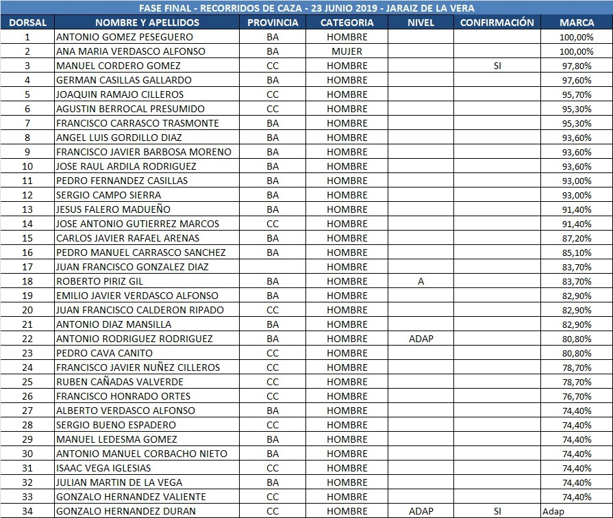 Clasificados para la fase final del Campeonato de Extremadura de Recorridos de Caza