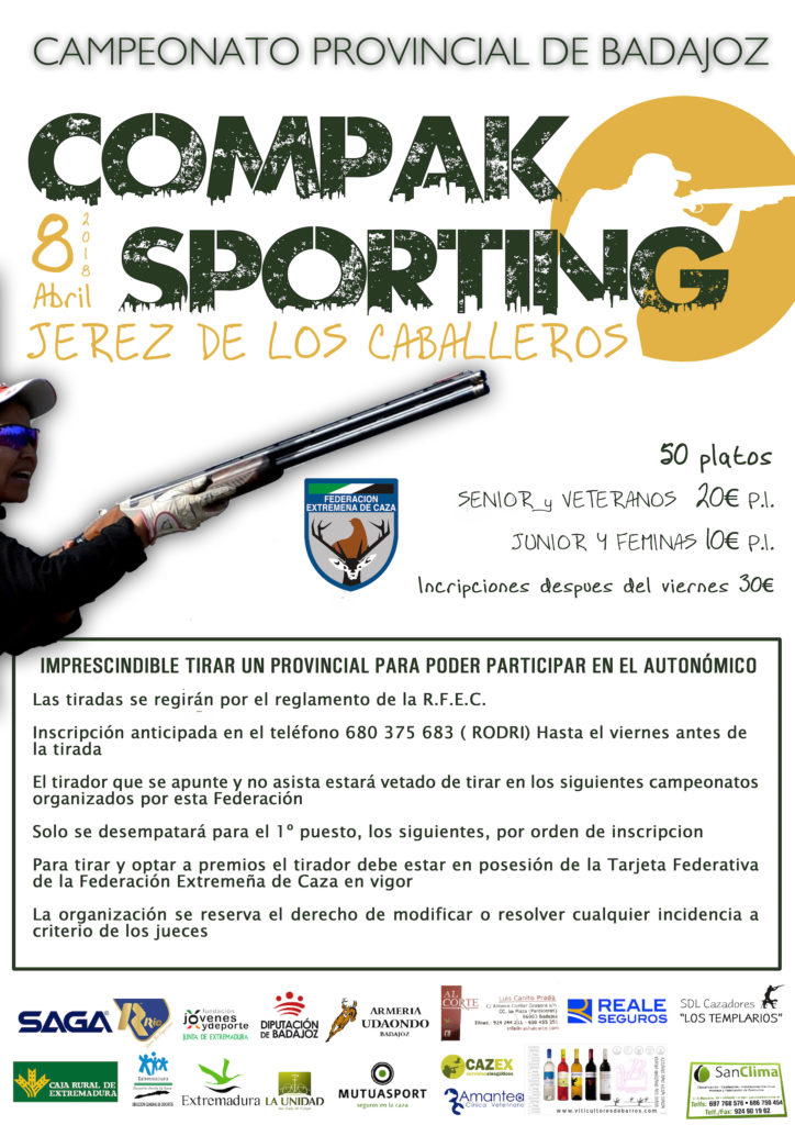 El próximo sábado arrancan los Campeonatos Provinciales de Compak Sporting. En concreto, será el 8 de abril en Jerez de los Caballeros, con el campeonato pacense. En cuanto al campeonato cacereño, será el 29 de abril en Valencia de Alcántara.