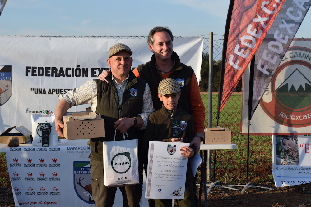 Estos tres participantes serán los representantes extremeños en el próximo Campeonato de España de Perdiz con Reclamo, que se celebrará el próximo 29 de febrero en la localidad murciana de Mazarrón.