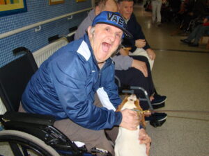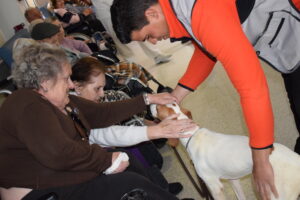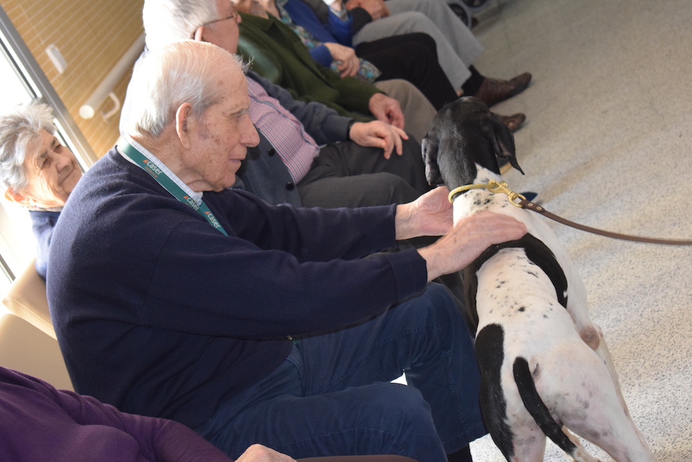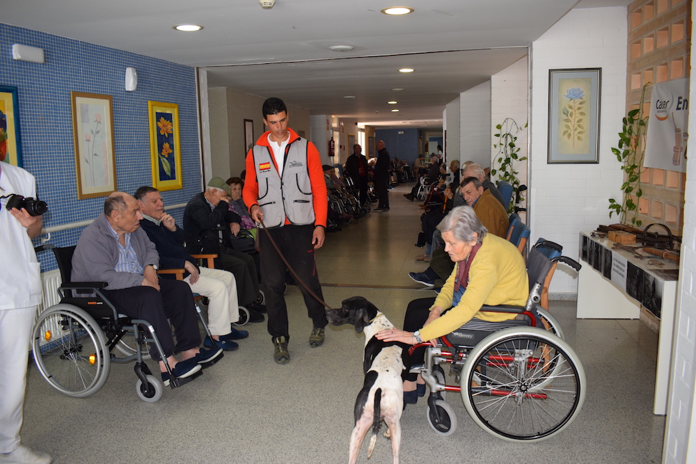 A lo largo de este mes de febrero, el Museo Etnográfico ha llevado hasta CASER Residencial material relacionado con la actividad cinegética. Tanto los residentes como sus familiares se han emocionado retrocediendo al pasado, y el broche a este taller lo ha puesto la jornada de terapia con perros de caza que ha conseguido estimular las capacidades de los mayores. Sus caricias y sonrisas eran muestra de su felicidad, la de sus familiares y cuidadores.